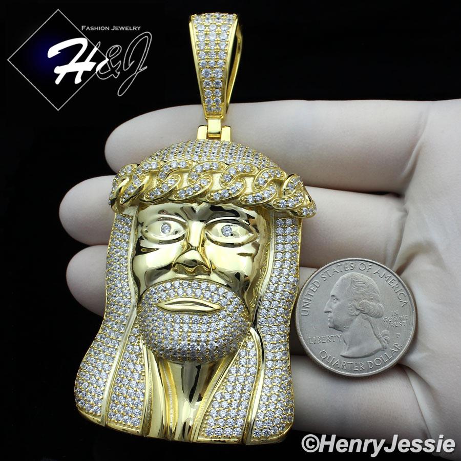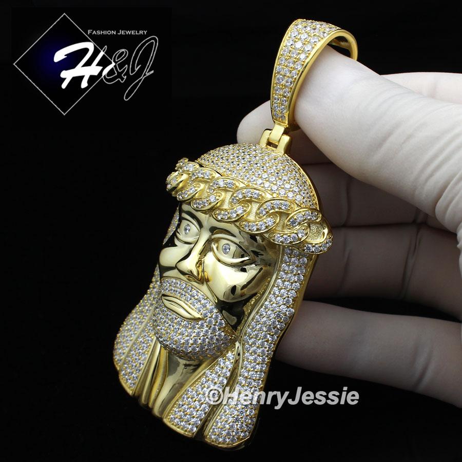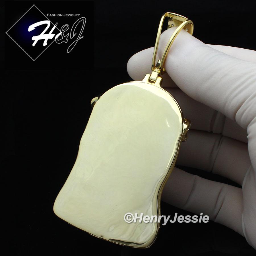 MEN 14K GOLD FINISH LAB DIAMOND OVERSIZE ICED GOLD 3D JESUS FACE PENDANT*BGP6
