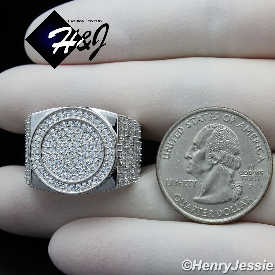 MEN 925 STERLING SILVER FUL ICY DIAMOND BLING SILVER 3D WATCN STYLE RING*SR175