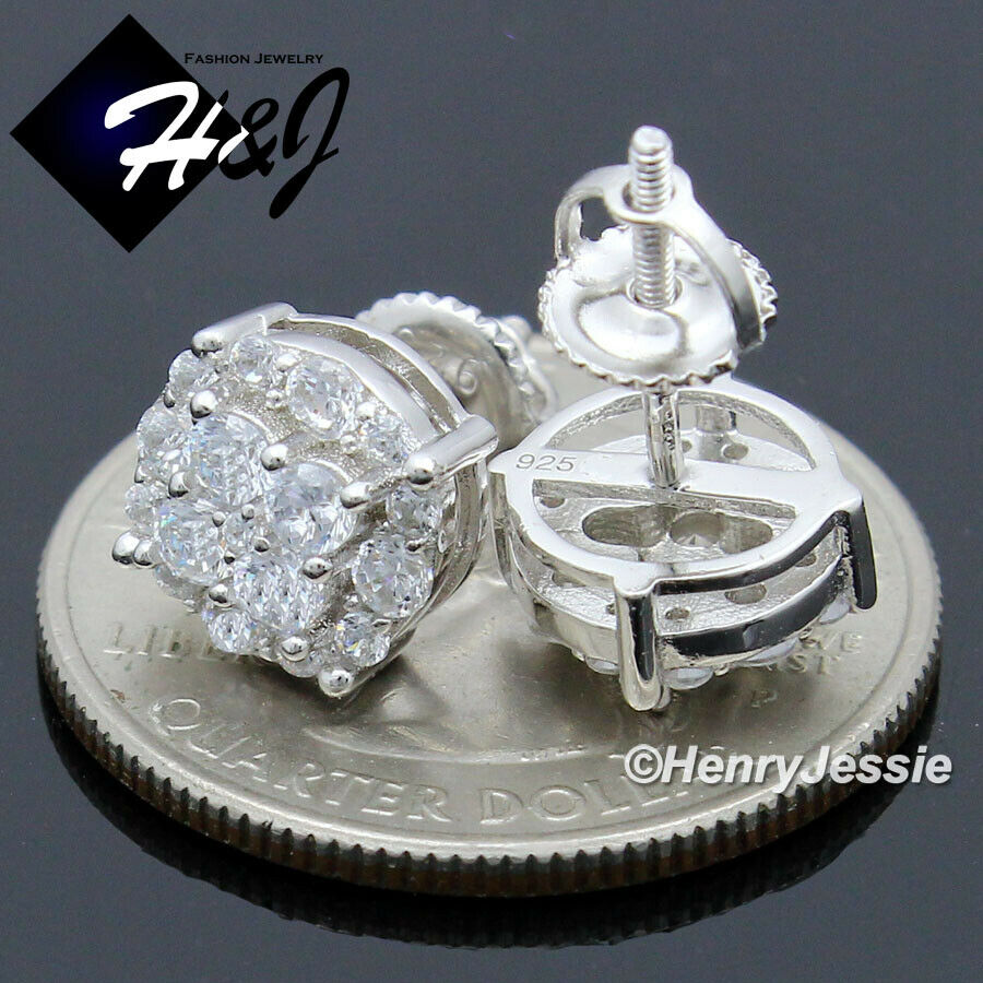 MEN WOMEN SOLID 925 STERLING SILVER ICY BLING CZ 9MM 3D ROUND STUD EARRING*E211