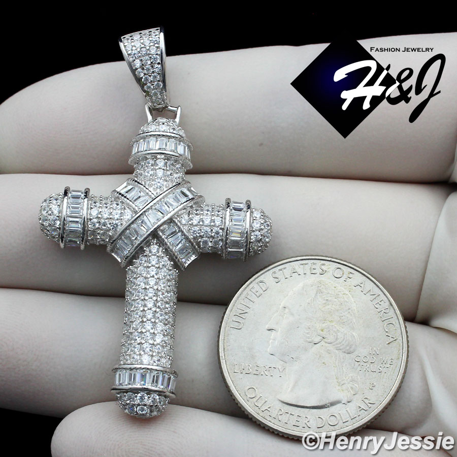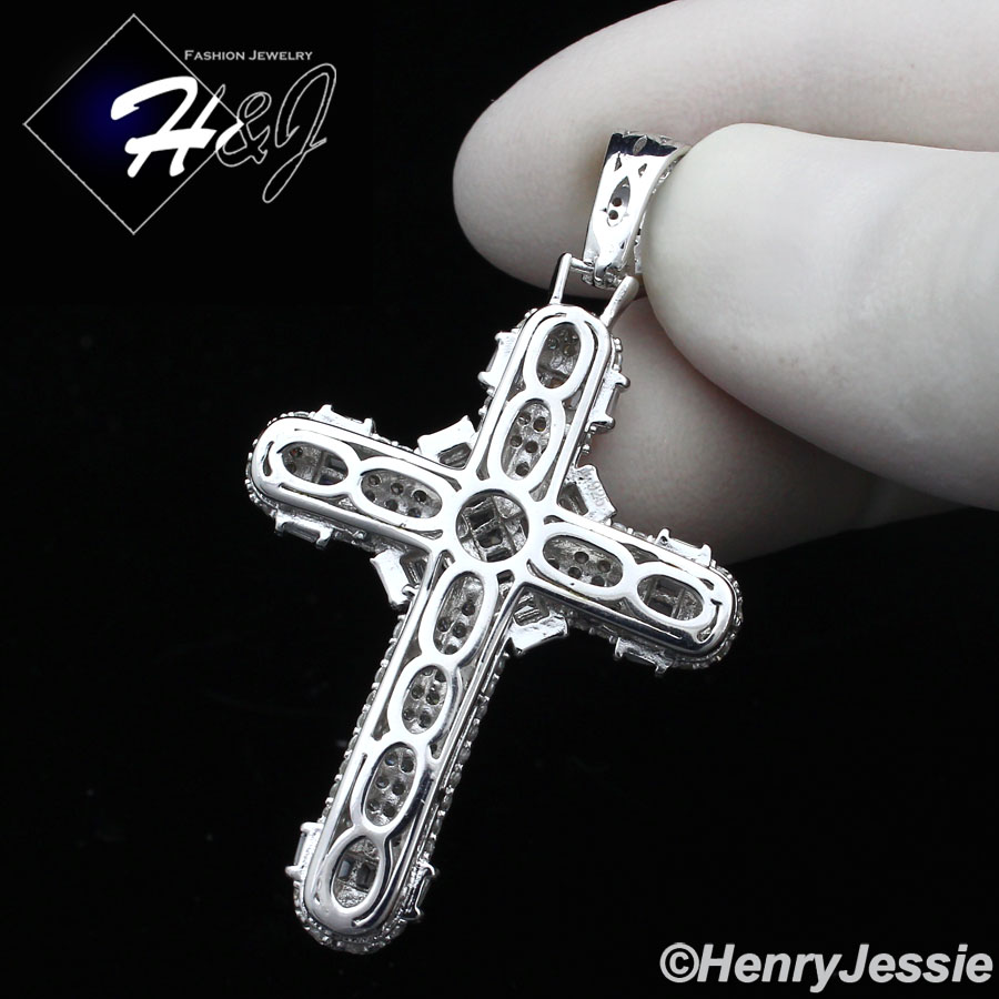 MEN SOLID 925 STERLING SILVER ICY BLING CUBIC ZIRCONIA 3D CROSS PENDANT*SP232
