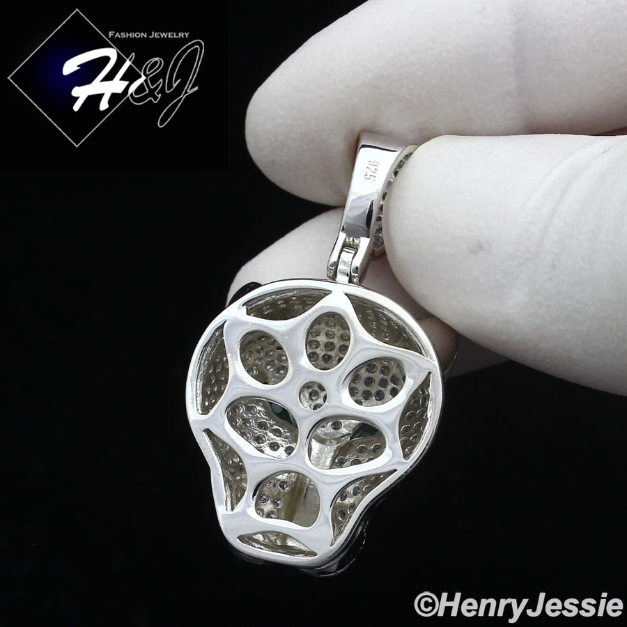 MEN SOLID 925 STERLING SILVER ICY BLING CZ SILVER 3D LEOPARD HEAD PENDANT*SP403