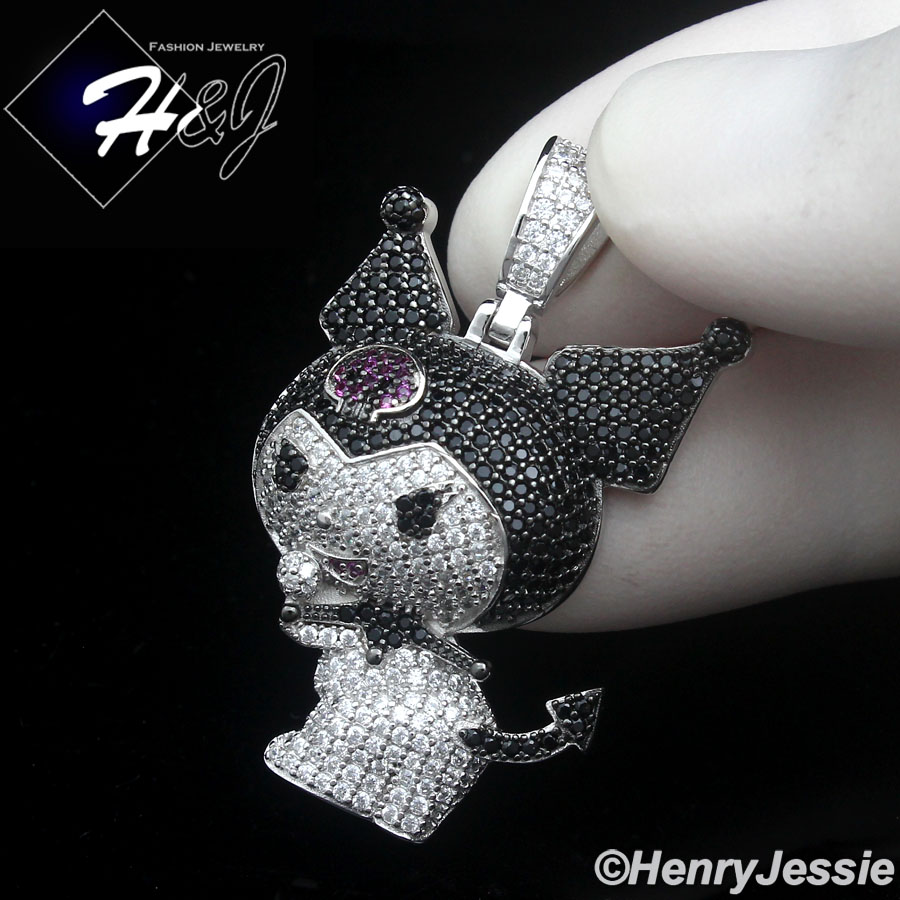 MEN WOMEN SOLID 925 STERLING SILVER ICY BLING CZ 3D KUROMI CARTOON PENDANT*SP492