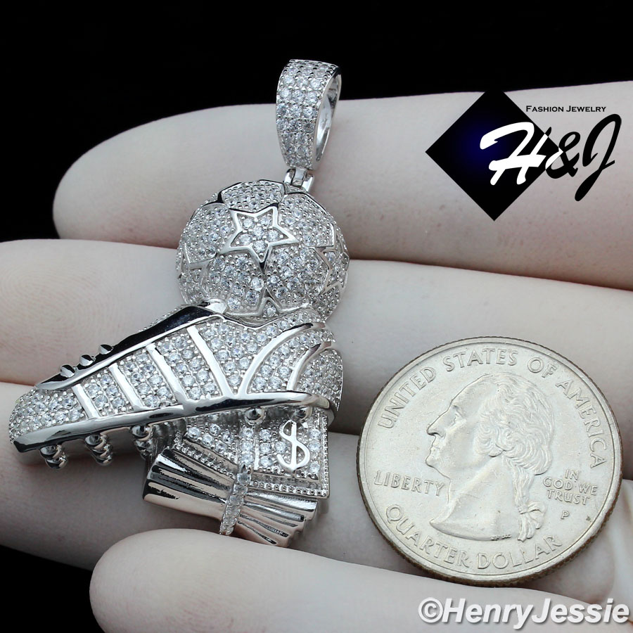 MEN SOLID 925 STERLING SILVER ICY BLING CZ SOCCER FOOTBALL SHOE BALL PENDANT*SP304