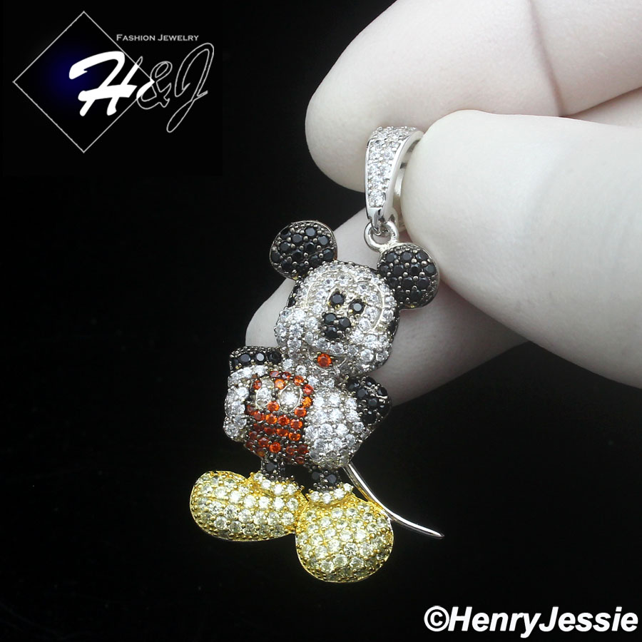 Your Position: Home > Sterling Silver > Men > Pendants > MEN SOLID 925 STERLING SILVER ICY BLING CZ 3D HIPHOP MICKEY MOUSE PENDANT*SP475