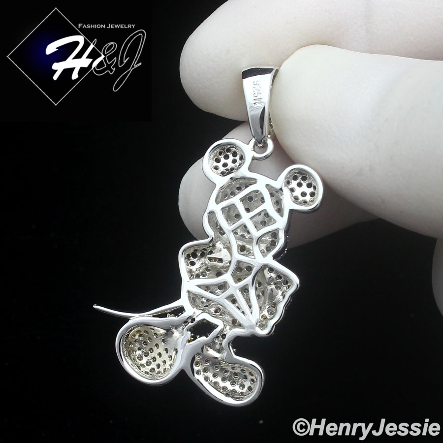 MEN SOLID 925 STERLING SILVER ICY BLING CZ 3D HIPHOP MICKEY MOUSE PENDANT*SP475