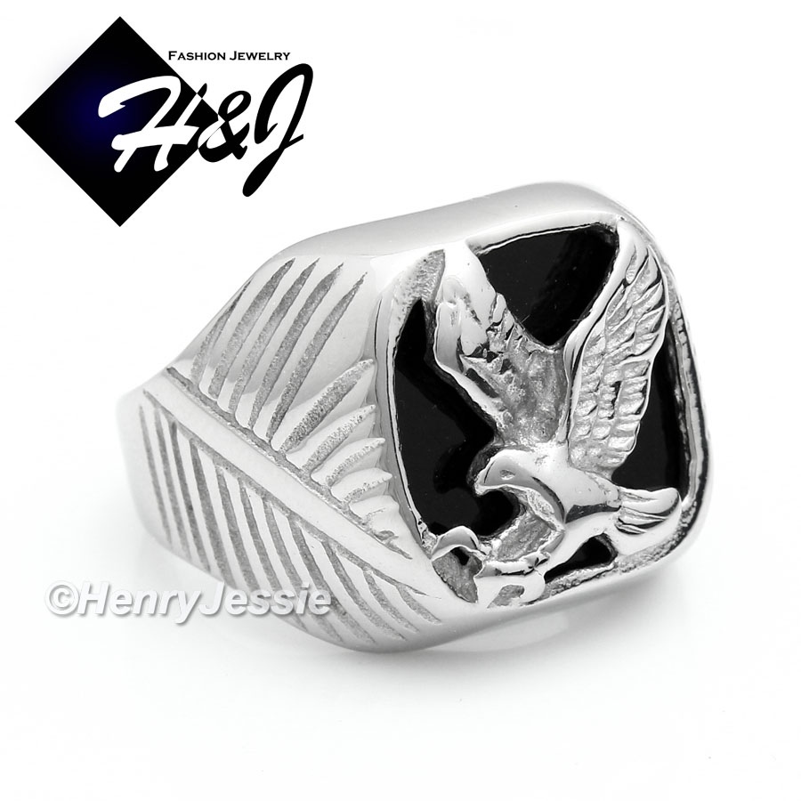 MEN's Stainless Steel Silver Black Onyx EAGLE Ring Size 8-13*R79