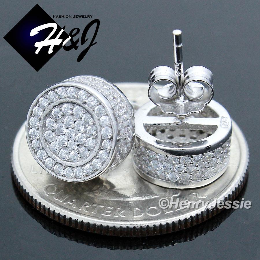 MEN 925 STERLING SILVER 9MM LAB DIAMOND ICED BLING ROUND 3D STUD EARRING*E86