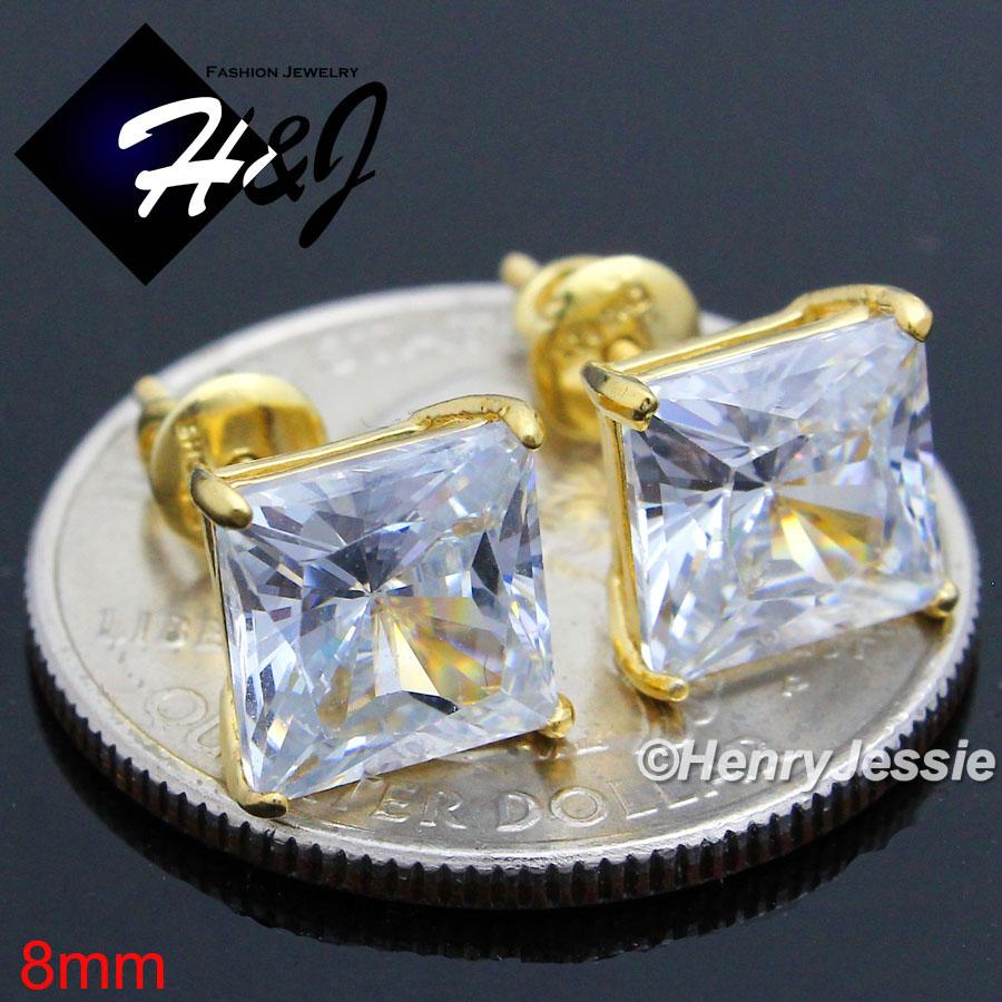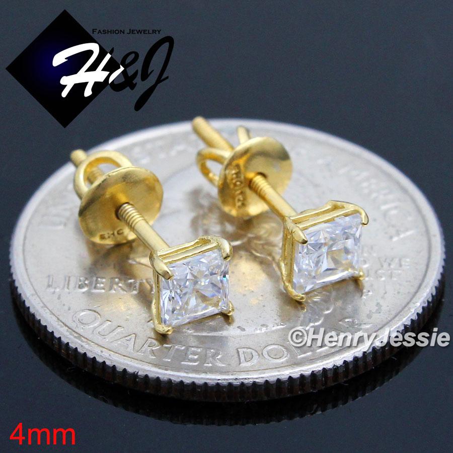 925 STERLING SILVER 4/5/6/7/8/9MM SQUARE CLEAR CZ GOLD SCREW BACK STUD EARRING*GE93