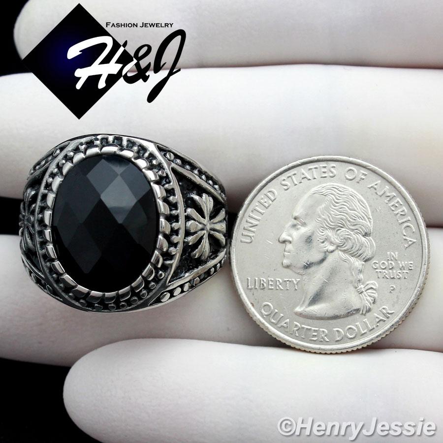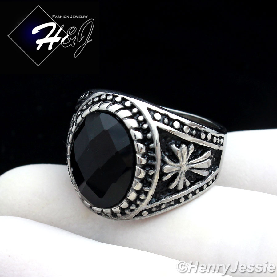 MEN's Stainless Steel Silver Black Oval Onyx Vintage Ring Size 8-13*R88