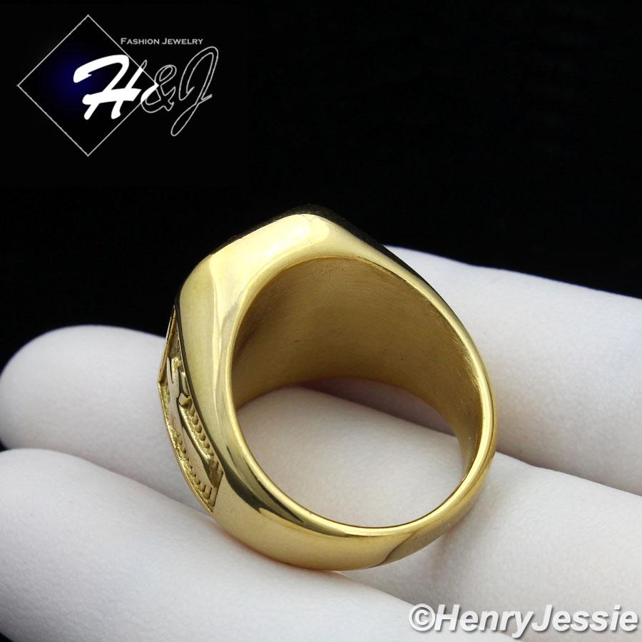 MEN's Stainless Steel Gold/Black Rectangle Onyx Cross Ring Size 8-13*GR112