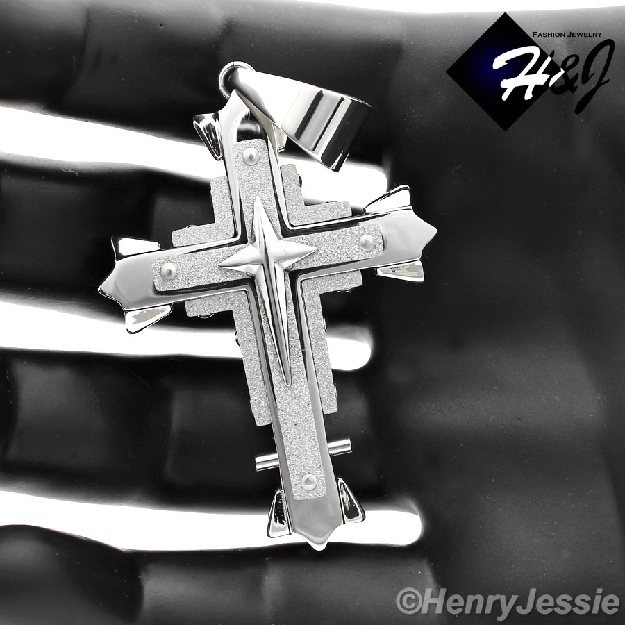 Your Position: Home > Stainless Steel > Men > Pendants > MEN Stainless Steel Silver Matte Glitter Finished Cross Charm Pendant*S51