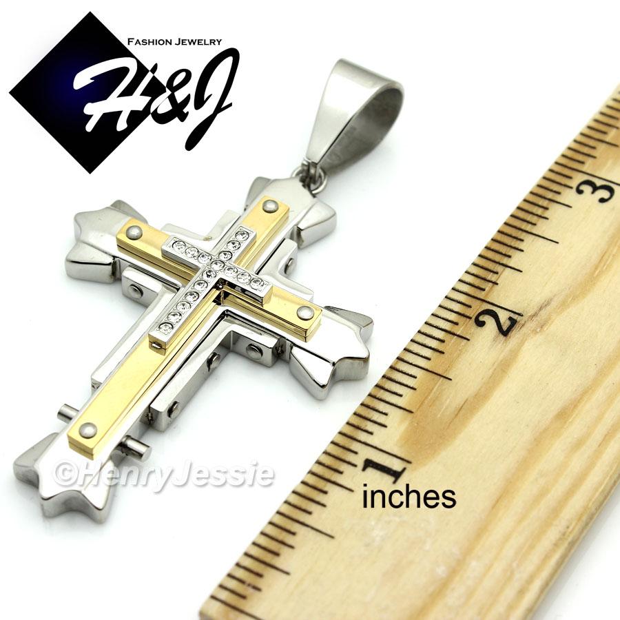 MEN Stainless Steel 2.3"x1.6"Gold Silver Cross Pendant With CZ Stone*S52