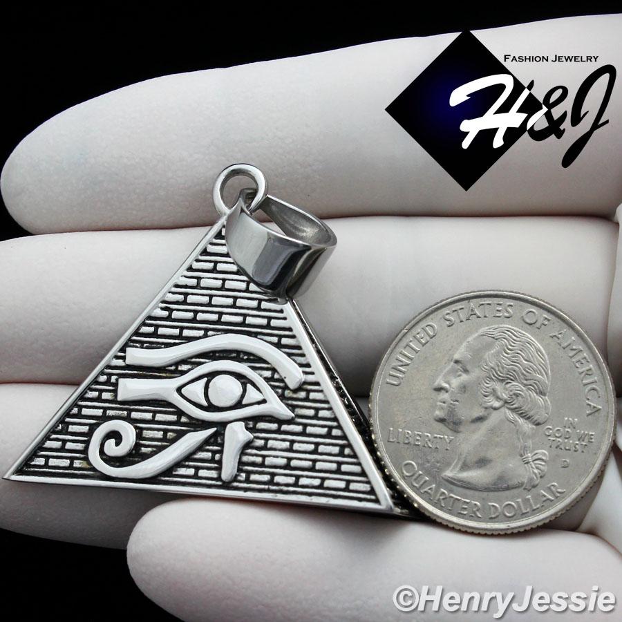 MEN's Stainless Steel Silver/Black Eye of Horus Pyramid Charm Pendant*P89