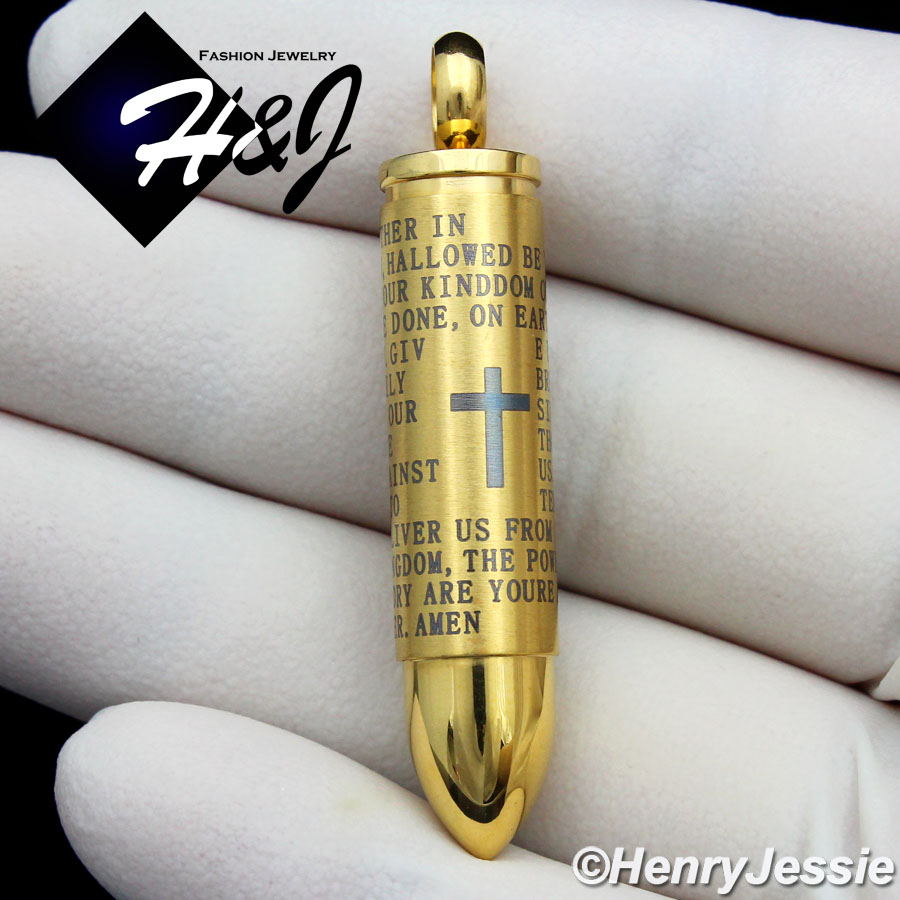 MEN's Stainless Steel Cross Bible Verse Gold Bullet Charm Pendant*GP99