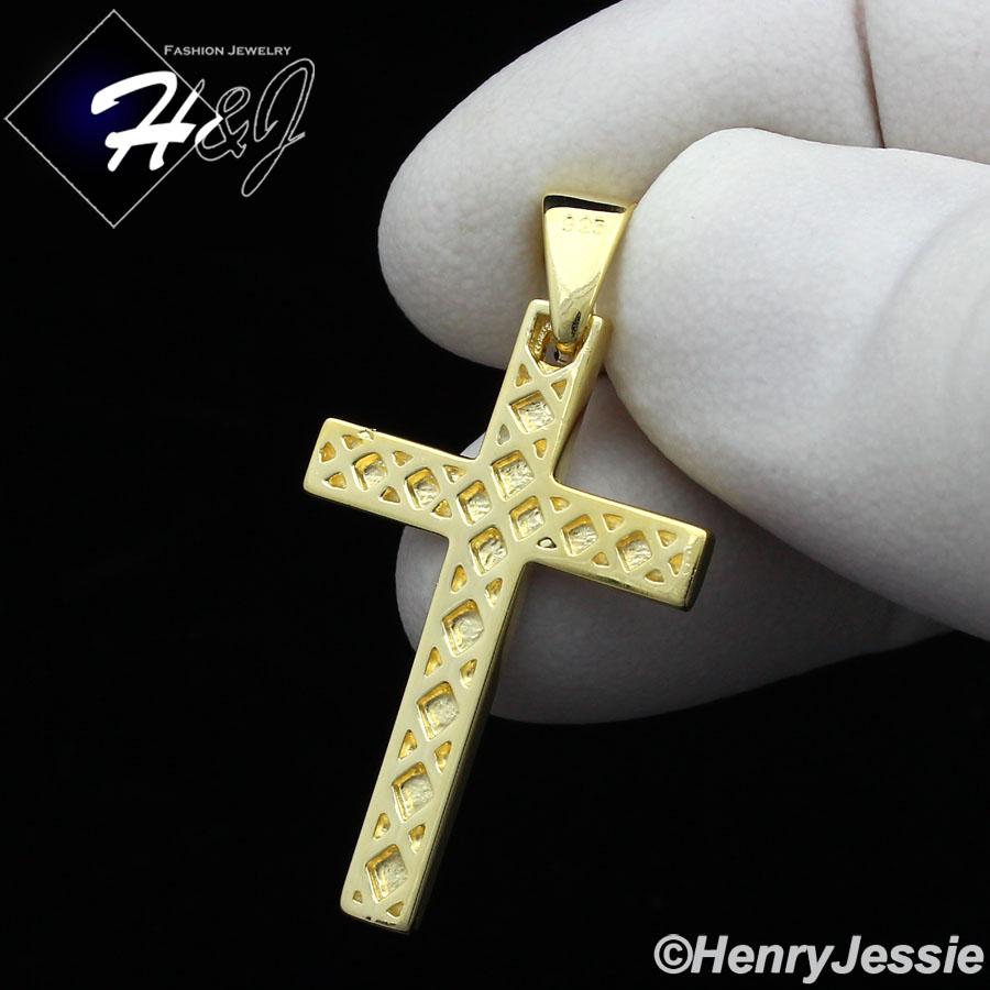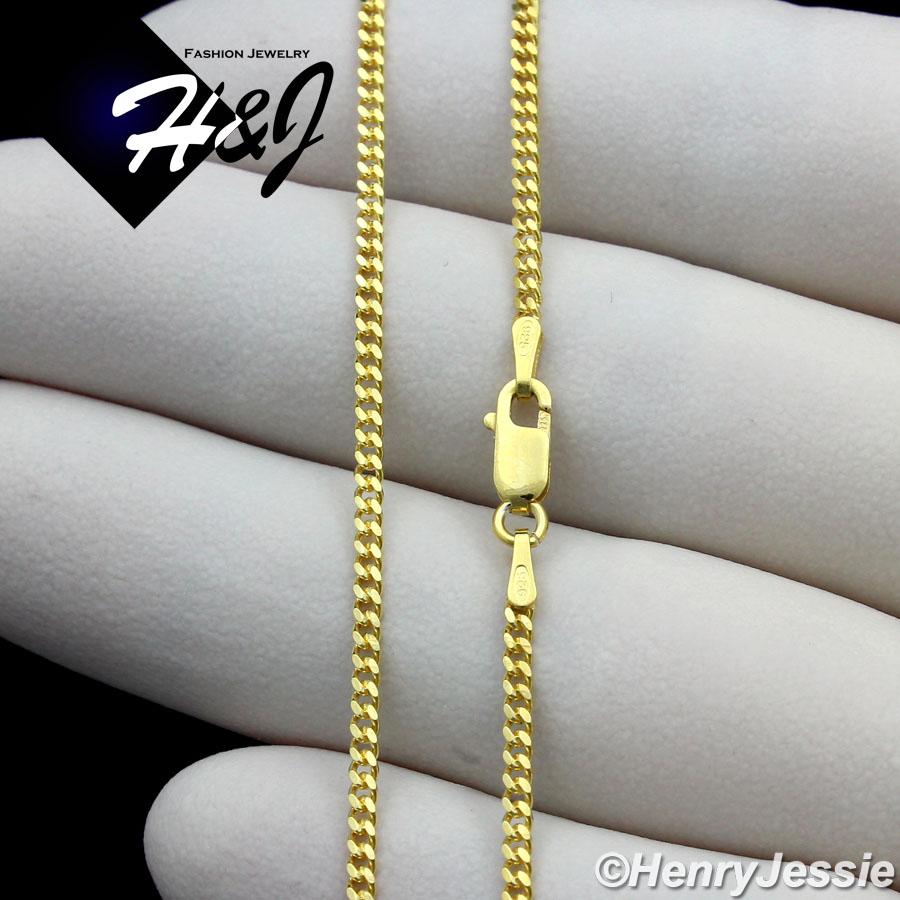 16-24"MEN 925 STERLING SILVER 2MM GOLD MIAMI CUBAN CHAIN PLAIN CROSS PENDANT*GP194