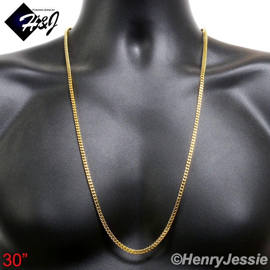 20"24"30"MEN's Stainless Steel 2mm/3mm Gold Franco Cuban Curb Box Link Chain Necklace*GN150