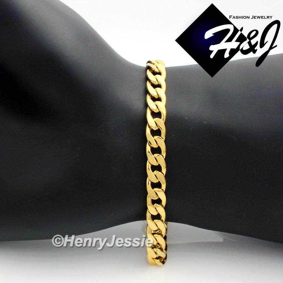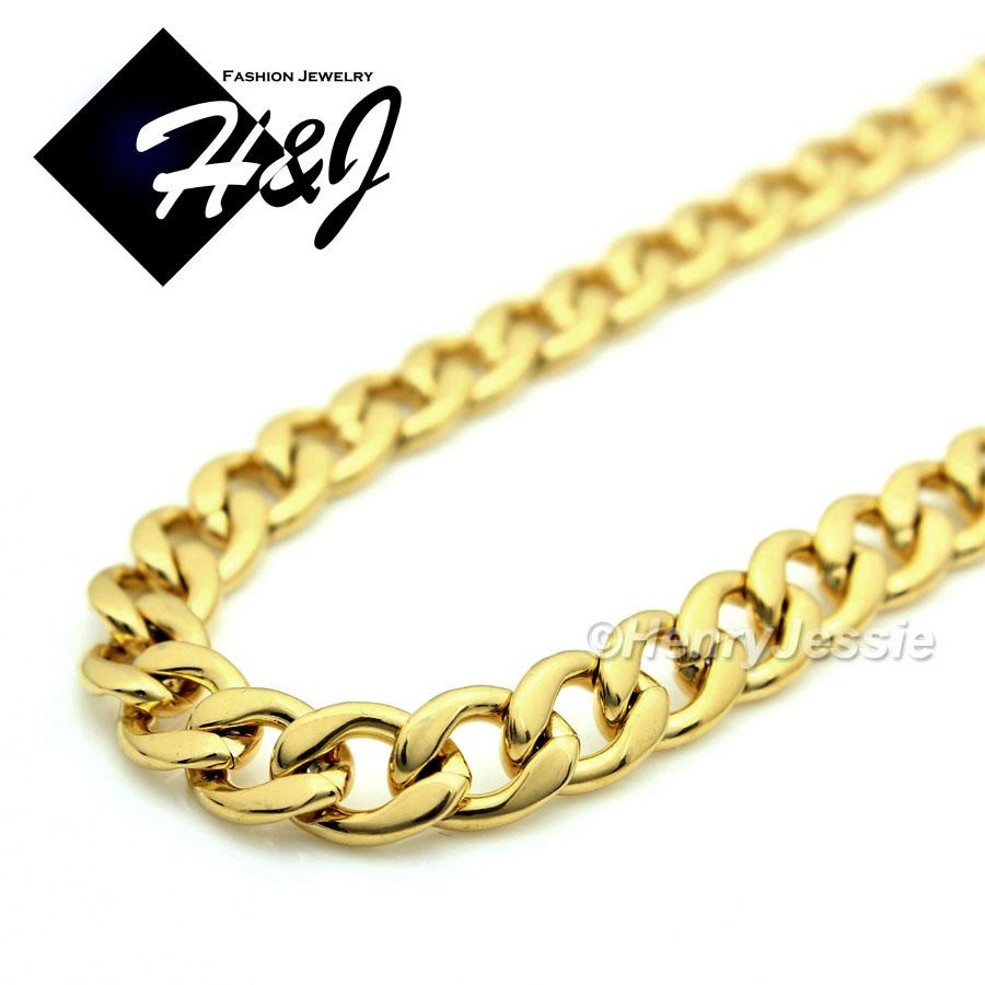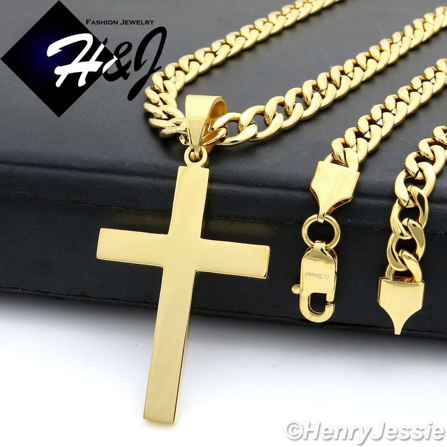 24"MEN Stainless Steel 7mm Gold Cuban Curb Necklace Bracelet Plain Cross Pendant*GP64
