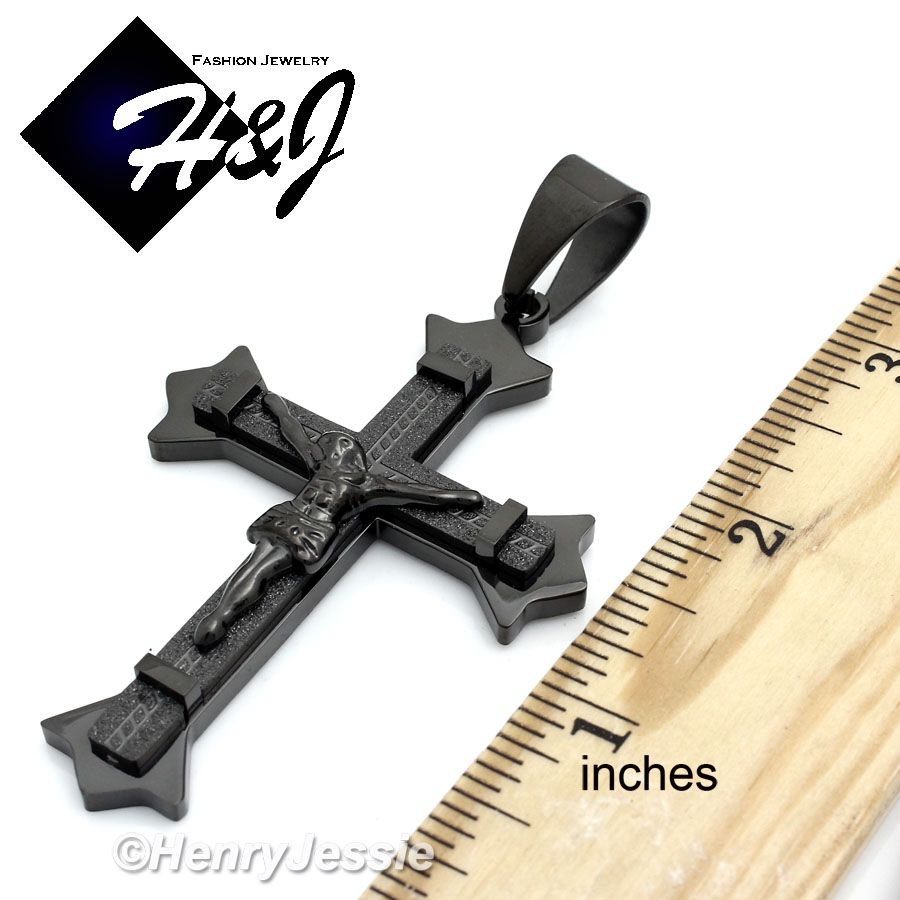 MEN Stainless Steel Black Matte Glitter Finished Jesus Christ Cross Crucifix Charm Pendant*MJ28