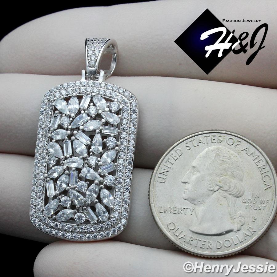 MEN 925 STERLING SILVER BAGUETTE LAB DIAMOND ICED BLING DOG TAG PENDANT*SP251